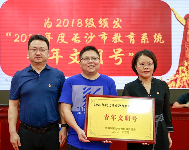 “独行快,众行远。”三年里互相帮扶,向着心中的梦想奋力进发;“栉风沐雨,淬火成钢。”三年里经受风雨吹打,朝着远方的旷野坚定前行;“万夫一力,天下无敌”三年里团结一心,未来终将造就一段传奇。在铿锵的乐声中,龚玉刚校长为2018级颁发“2021年度长沙市教育系统青年文明号”。荣光属于奋进者,时光不忘铸梦人,2018级必将满弓发力,俯首奋蹄,踏实耕耘在这一方教育的沃土。