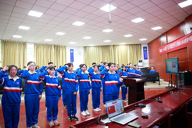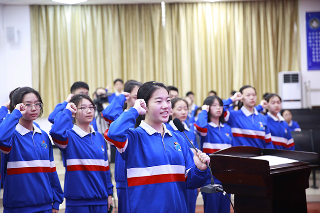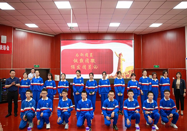 “我们是五月的花海,用青春拥抱时代。我们是初升的太阳,用生命点燃未来。”青春的歌声里,龚玉刚校长和袁艺书记为新团员代表佩戴团徽并颁发团员证,“一代人有一代人的长征,一代人有一代人的担当。”全体新团员在团旗下庄严宣誓,共青团旗焰焰,青年誓言声声,无不激荡着每一个青春的心灵。向着目标奔跑的国家,尽是青春的模样。