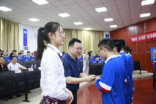 分会场党员老师、班主任为新团员佩戴团徽并颁发团员证