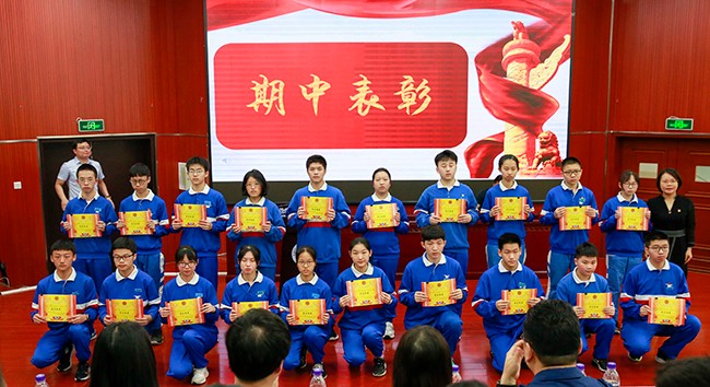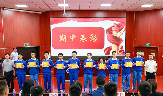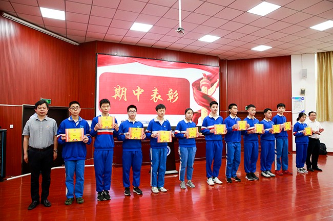 龚玉刚校长、袁艺书记为获得学习标兵的十位同学进行颁奖;李志军副校长、曹志鹏副校长为获得单科王的同学进行颁奖;教务处封晓菊副主任为获得学习之星的学生代表进行领奖;校团委胡维副书记为获得进步之星的学生代表进行颁奖。